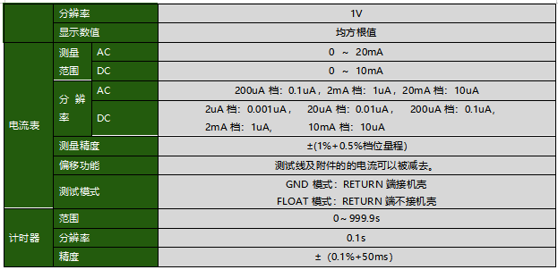 規(guī)格表